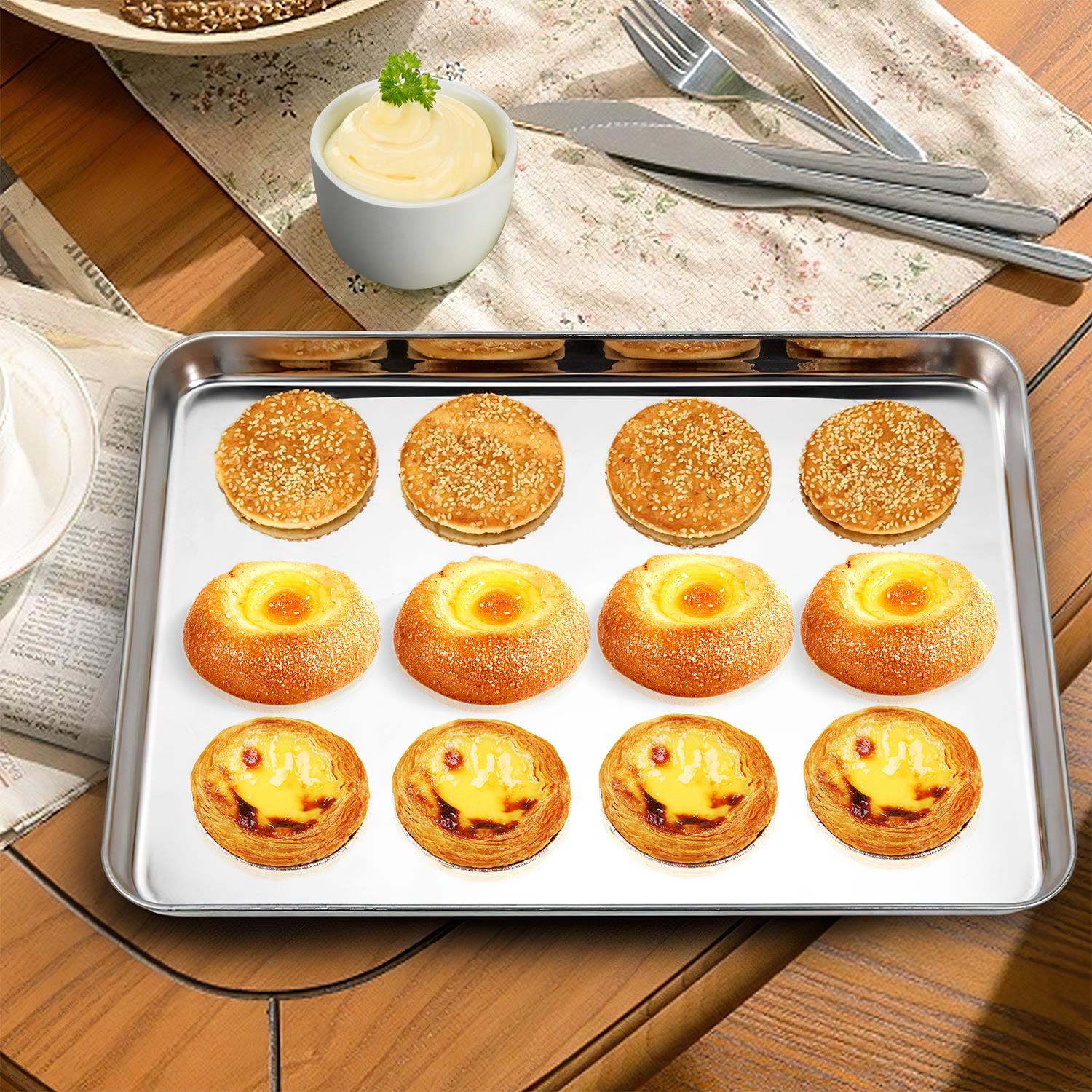 Our stainless steel baking tray is made of high quality mirror polishing process, the surface is smooth and flat, which can effectively reduce the risk of food sticking to the food, make the food easier to come off, and make it easier to clean. The edges of the baking pan are finely polished for a soft touch and a more comfortable grip, which not only enhances the experience of using it, but also ensures a smoother baking process.