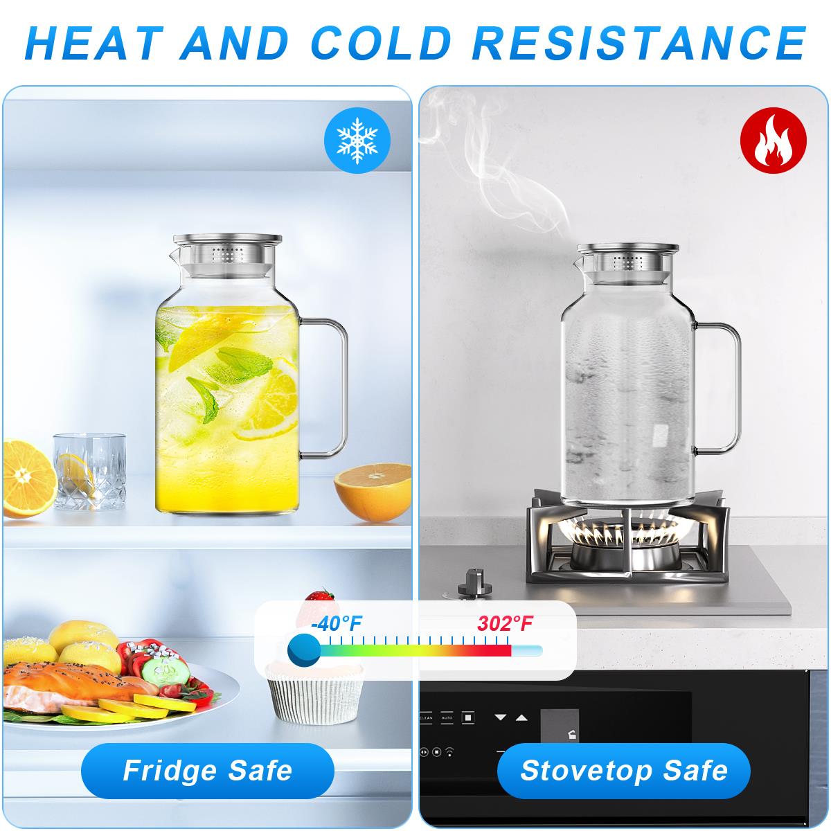 • 【Versatile Temperature Tolerance】- Designed for complete kitchen versatility, this glass carafe transitions effortlessly between temperature extremes. Safely use it for freezer storage (-40°F), microwave heating, or even stovetop warming (up to 302°F). The dishwasher-safe construction and sterilization compatibility ensure hassle-free maintenance.