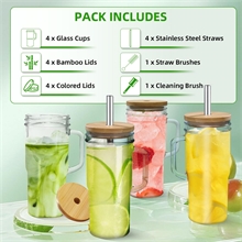 glass cups with lids and straws includes versatile bamboo & colorful
