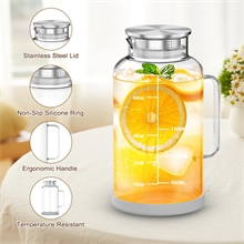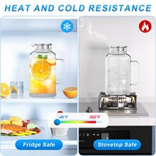 Crafted from strong borosilicate glass, GPED glass water pitcher resists thermal shock and handles temperatures from -40°F to 302°F. It’s completely BPA-free, lead-free, and ensures water tastes fresh—no plastic odor or metallic aftertaste. The rust-resistant 18/8 stainless steel lid adds lasting quality.