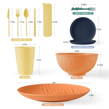 【Eco-Friendly & Sustainable Material】-The dinnerware set is natural degradable wheat straw fiber and food grade PP material, this lightweight dinnerware set is 100% BPA free, gluten-free, non-toxic, odorless and environmentally friendly, it can directly contact with food, sustainable to environment for your home.