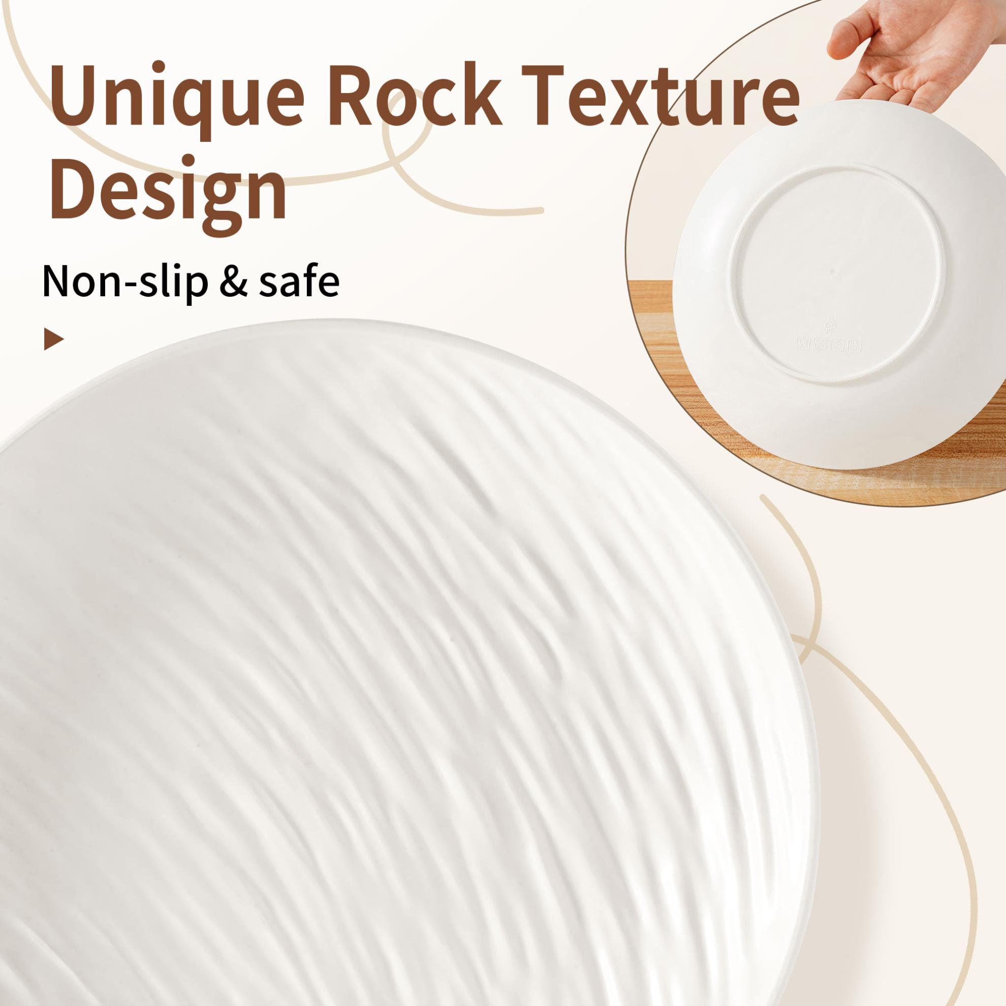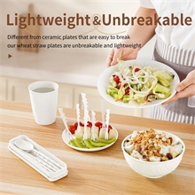 【Lightweight & Durable & Unbreakable】Compared to ceramic dinnerware, our wheat straw dinnerware set is more lightweight and not easy to break. These plates and bowls sets are seriously drop-proof, shatterproof, shard-proof. Perfect for your toss-happy tots and for older adults who may not be able to manipulate heavier dishes.