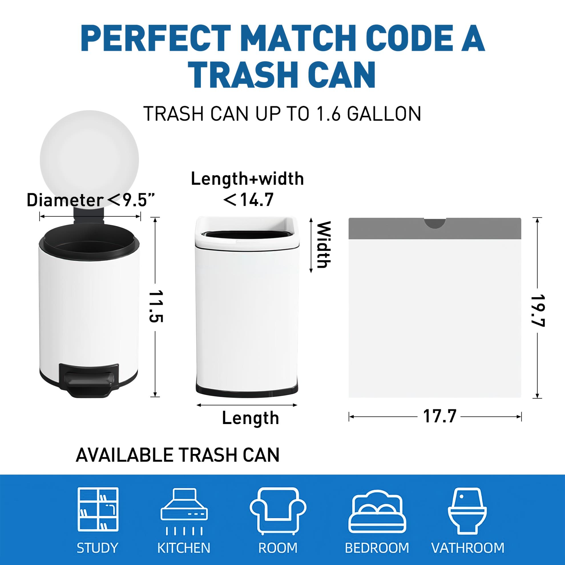 Strong, leak-proof garbage bags designed for small bins. Fits 4-6 gallon trash cans in bathrooms, kitchens, offices, and cars. Features easy-tie drawstrings for quick cleanup and thick material to prevent leaks and tears.✅ Easy-Tie Drawstring: Close bags