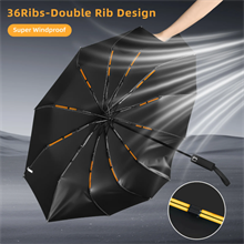 Stay protected from harsh weather with this heavy-duty automatic umbrella. Its 12-rib reinforced frame and black glue coating offer superior wind and UV resistance. The triple-fold compact design ensures easy portability for travel. This durable umbrella