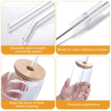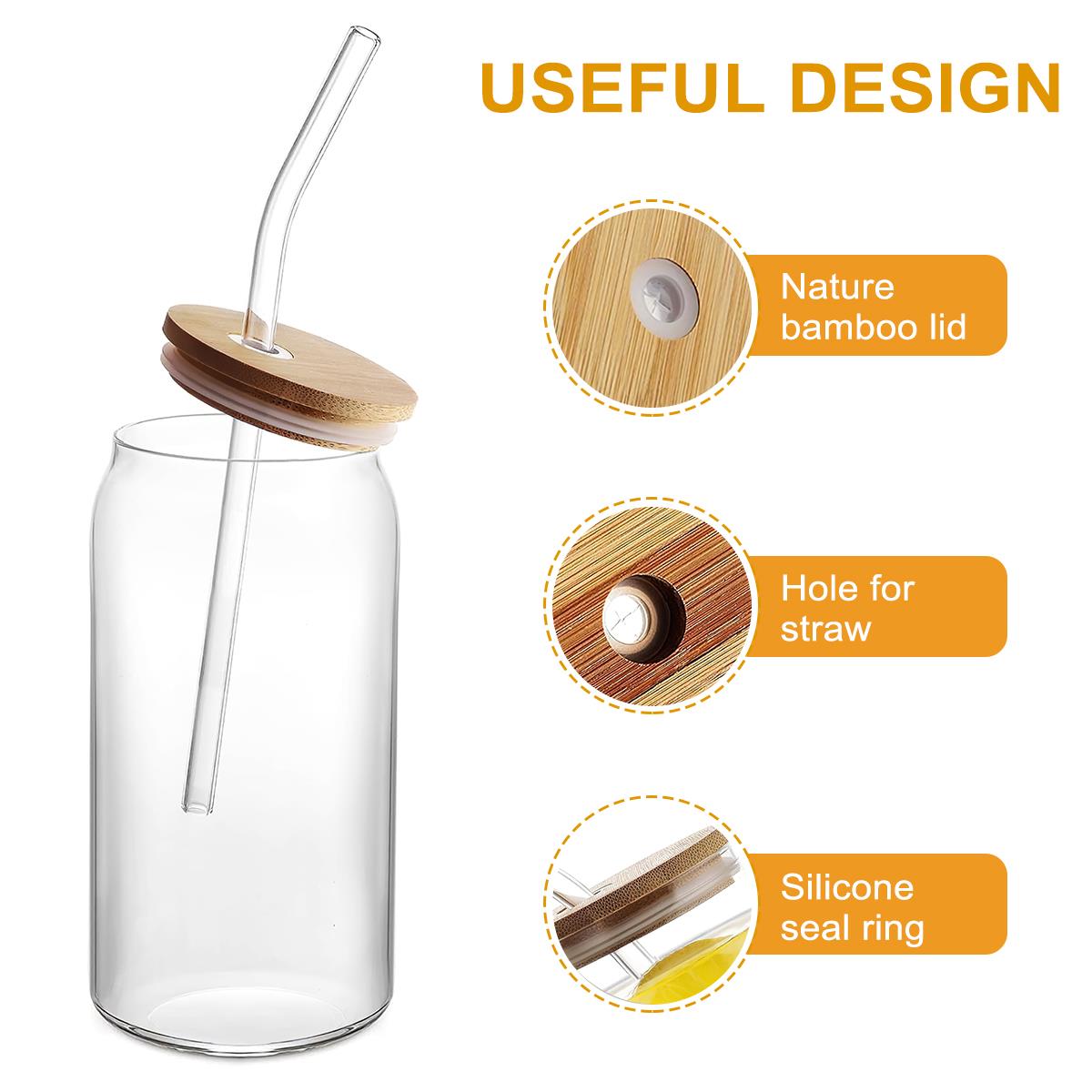 GPED glass cups with bamboo lids and glass straws set are made of thick borosilicate glass, free from lead and BPA, ensuring safe use for both hot and cold drinks. The 16oz can shaped glass cups feature a smooth rim for comfortable drinking and are designed for everyday durability and easy cleaning.