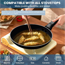 High Compatibility: The nonstick frying pan set is suitable for deep-fried, light-pressure cooking, steaming, boiling, decocting, grilling, and stirring. The induction base is specially designed to enhance performance on all stovetops. To preserve the nonstick pan, using silicone, nylon or wooden utensils.