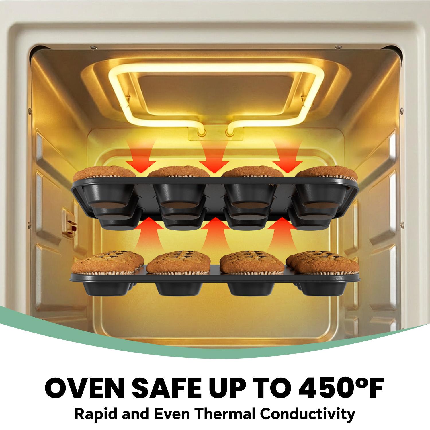 • 【Professional-Grade Material】Crafted from quality carbon steel, these GPED muffin tins promote even heat circulation and tolerate temperatures up to 450°F, helping achieve consistently baked goods with uniform coloring.