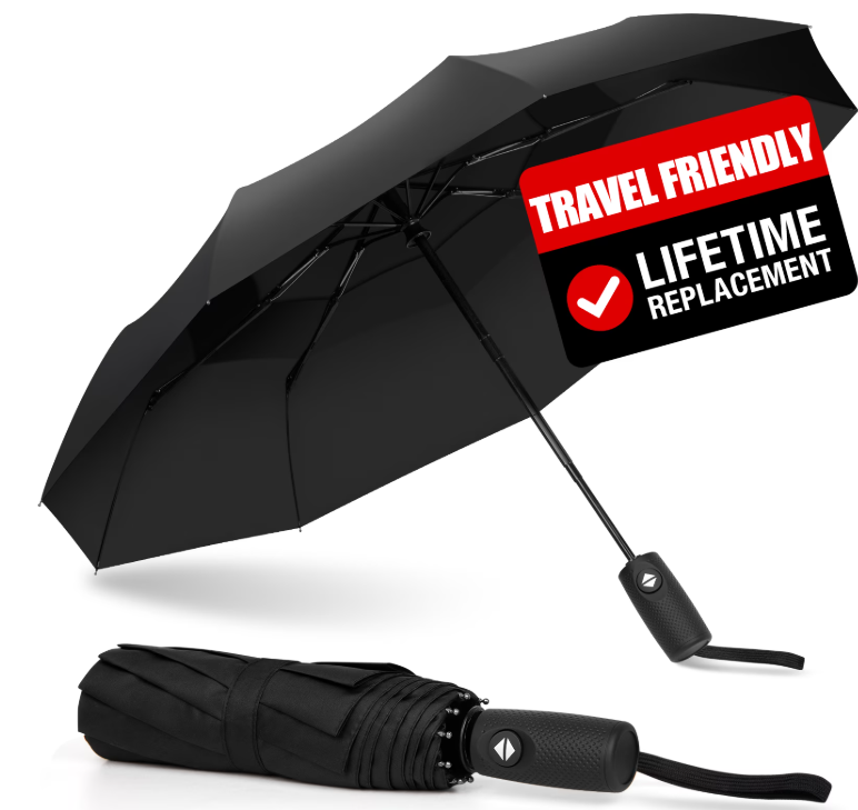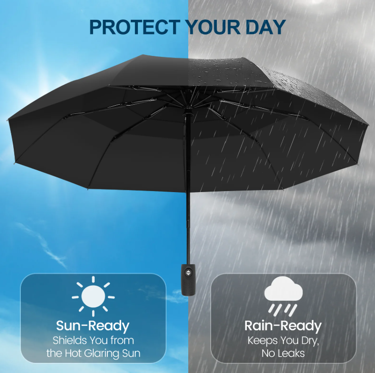 Experience unmatched protection with our premium auto-folding travel umbrella. Its windproof frame withstands strong gusts, while compact design ensures easy portability in car or backpack. Crafted from durable, lightweight materials, this travel umbrella