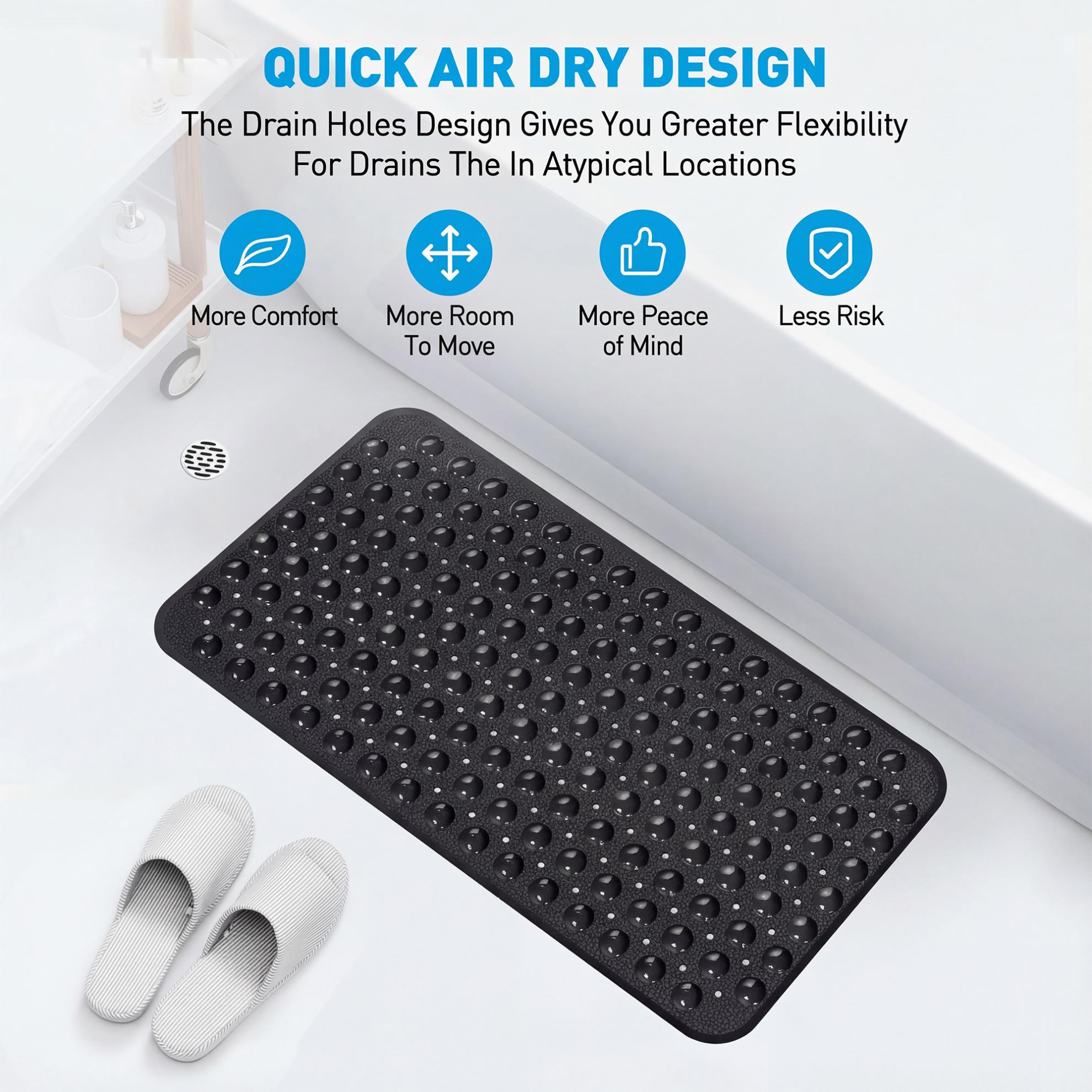 Slip-Proof Extended Bath Mat:Our premium bathtub and shower mats are engineered with 200 specially designed large suction cups. These oversized cups deliver far stronger adsorption power than standard small ones, locking securely onto smooth, clean surf