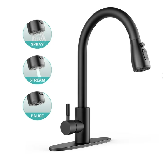 3 Outlet Setting Modes:The kitchen sink faucet has 3 spray settings - STREAM, SPRAY, and PAUSE. STREAM is used for water filling, SPRAY is used for powerful and wide-area cleaning, and PAUSE is used to avoid wasting water in multitasking mode.