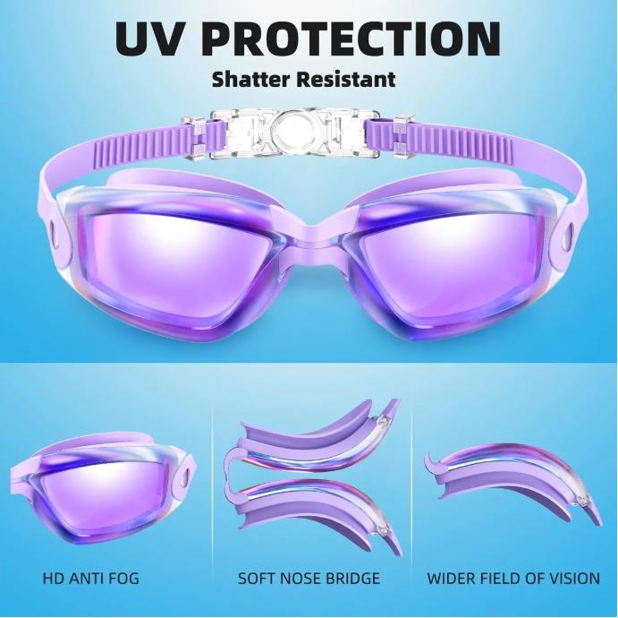 Anti-Fog Anti-UV Youth Swim Glasses Leak Proof for Adult Women Men.Goggles inner lenses are coated with the latest anti-fog treatment to let youth see clearly underwater without blurring or distortion.