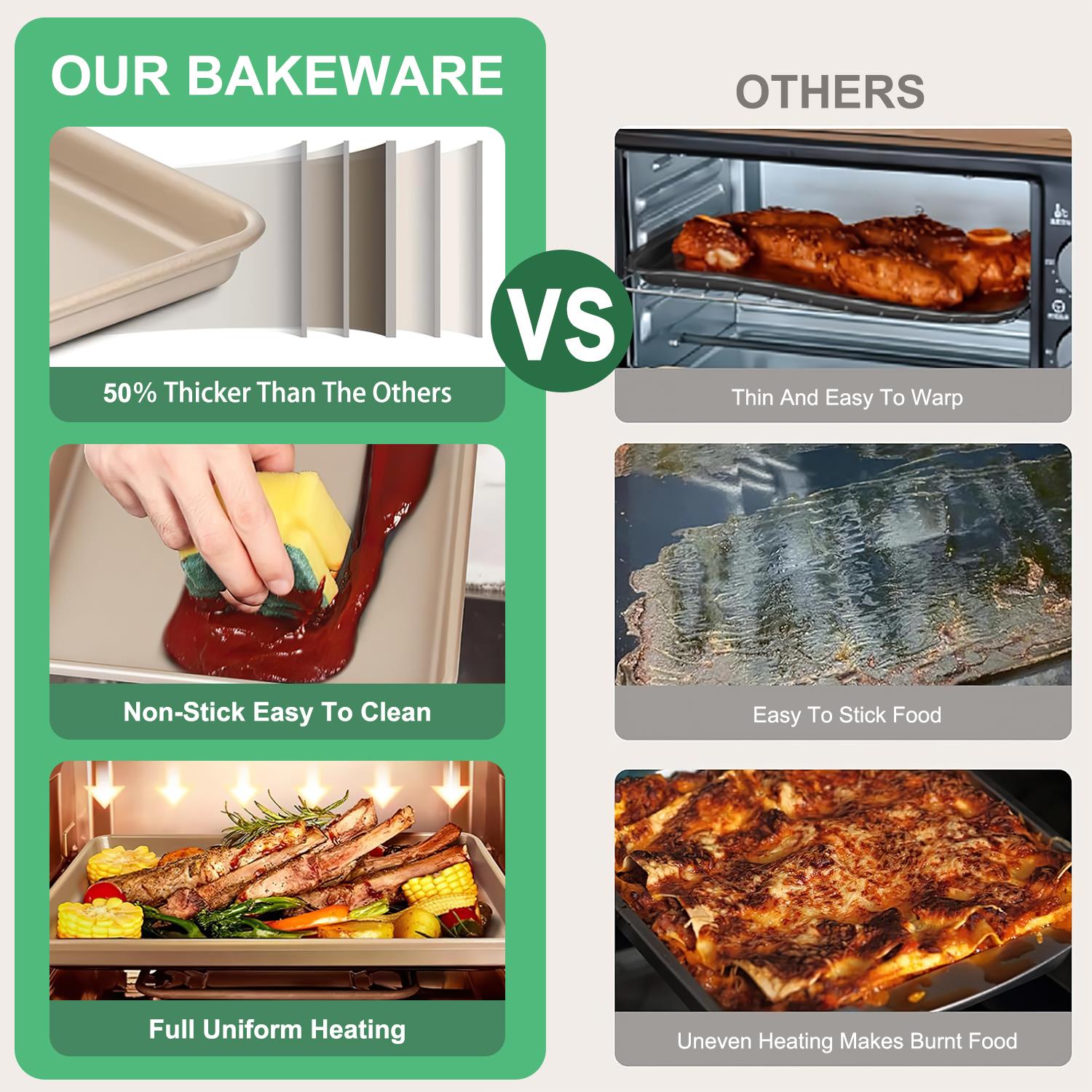 This versatile cookie tray pans include three different sizes of baking pans, 16 x 12 x 1 inches, 12 x 10 x 1 inches and 10 x 8 x 1 inches, designed for efficient baking. They are an ideal alternative to aluminum trays and are suitable for most common toasters or ovens, making it easy to meet your daily baking and various baking needs!