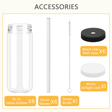 Glass bottles package contains 6 perforated black sip tops plus 6 vacuum-seal white preservation cap for your glass beverage containers. Cushioned gaskets block liquid escape during transit, while flow-control lids enable immediate consumption - ideal for hiking trails, fitness centers, or urban commuting.