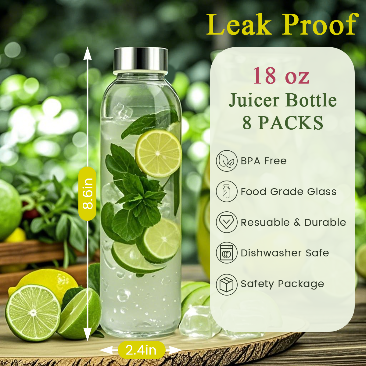 Upgrade your hydration with GPED 18 oz Glass Juice Bottles Set! Made from premium BPA-free glass and featuring airtight stainless steel lids, these reusable bottles keep drinks fresh and leak-free—perfect for juices, smoothies, iced coffee, or infused water. The durable, dishwasher-safe design resists cracks and odors, while the slim shape fits car cup holders and bags effortlessly. Eco-friendly and built to last, this 8-pack set helps you ditch disposable plastics without sacrificing convenience. Stay sustainable in style!