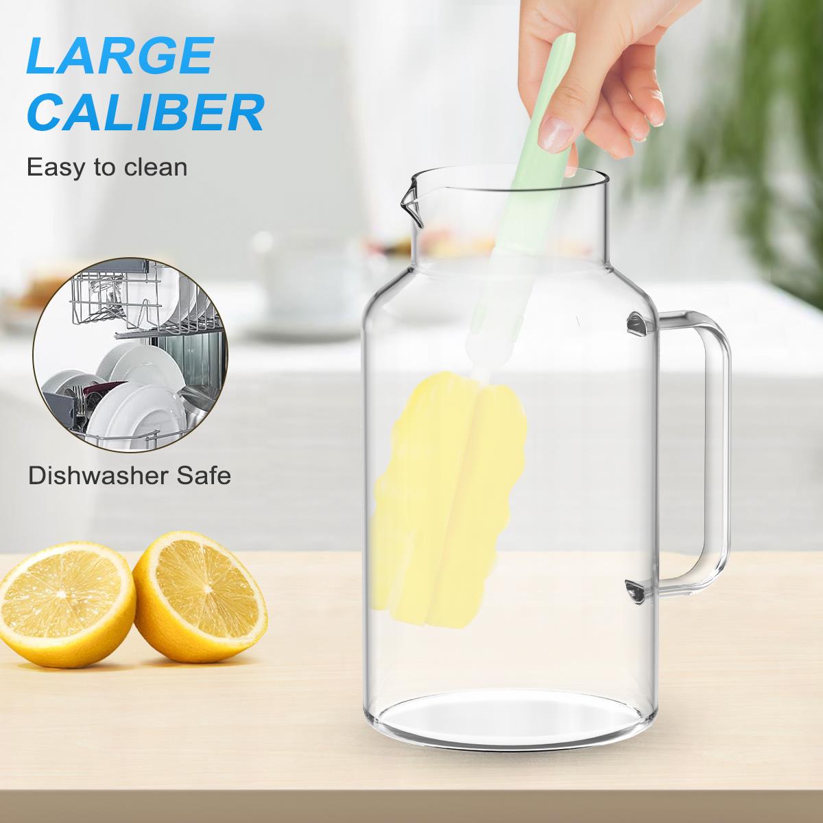 • 【Generous 60oz Serving Capacity】 - Perfect for entertaining, our glass jugs comfortably hold 60 ounces plus generous ice or fruit additions. With an 9" height and thoughtfully designed 4" opening width, they're ideal for crafting large quantities of iced tea, sangria, infused waters or cold brew while conveniently fitting standard fridge shelves.