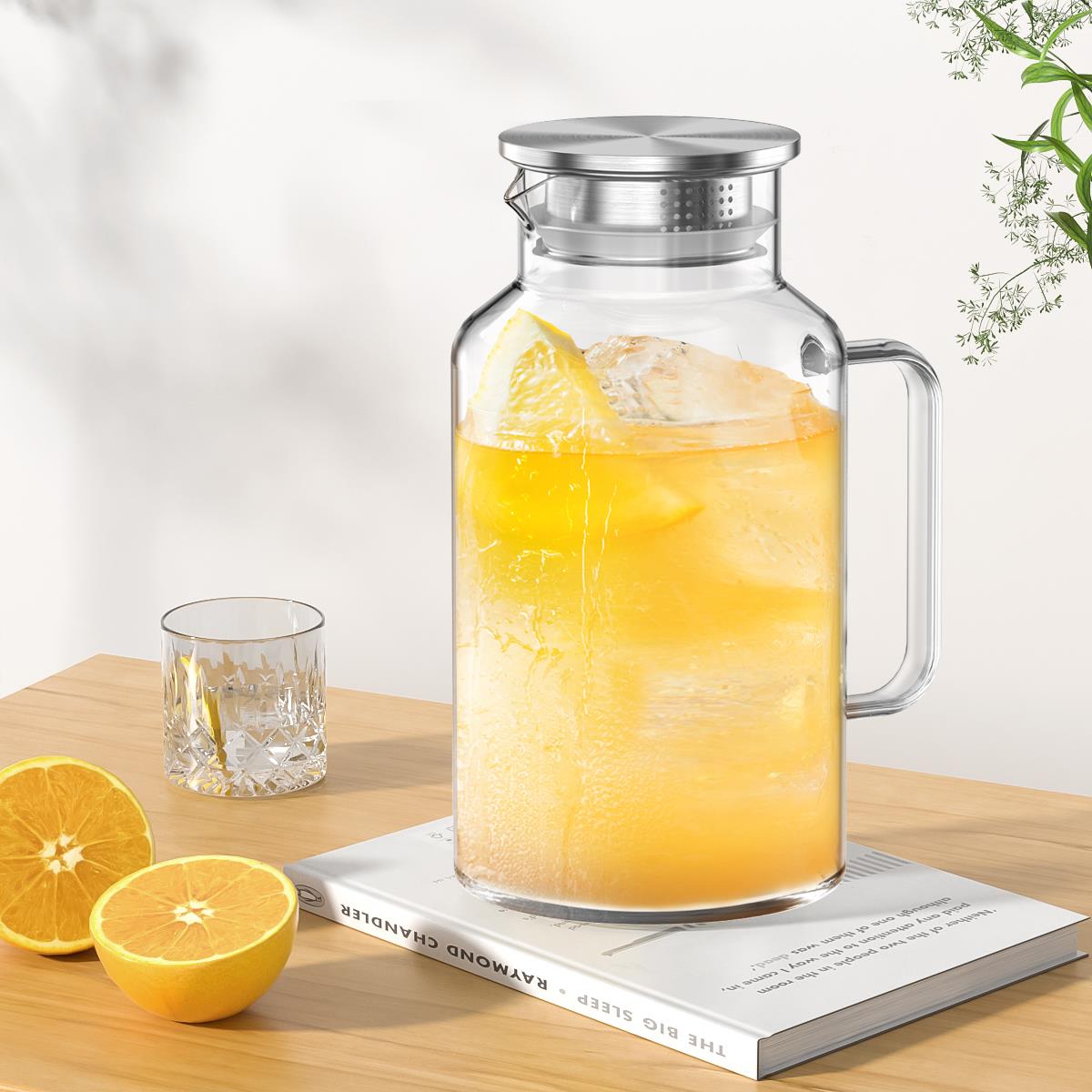 • 【Dual-Purpose Stainless Steel Filter Lid】 - The water pitcher features an innovative 304 stainless steel lid with dual-access functionality. Its precision micro-mesh filters herbs and seeds flawlessly, while the wide-mouth design enables smooth juice pouring. Through extensive engineering, we've reinforced the lid with heavy-duty steel construction for shake-resistant performance and lasting reliability.