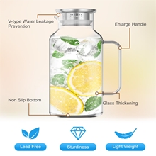 • 【Premium Borosilicate Glass Construction】 - GPED glass pitcher is forged from laboratory-grade borosilicate glass, guaranteeing toxin-free hydration with lead-safe materials that maintain drink purity. The ultra-stable glass formulation prevents chemical leaching and maintains crystal clarity, ensuring your infused waters, teas and cocktails stay completely uncontaminated - reflecting our dedication to health-first drinkware.