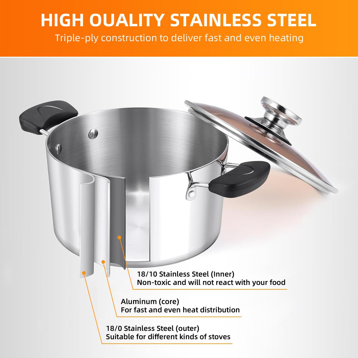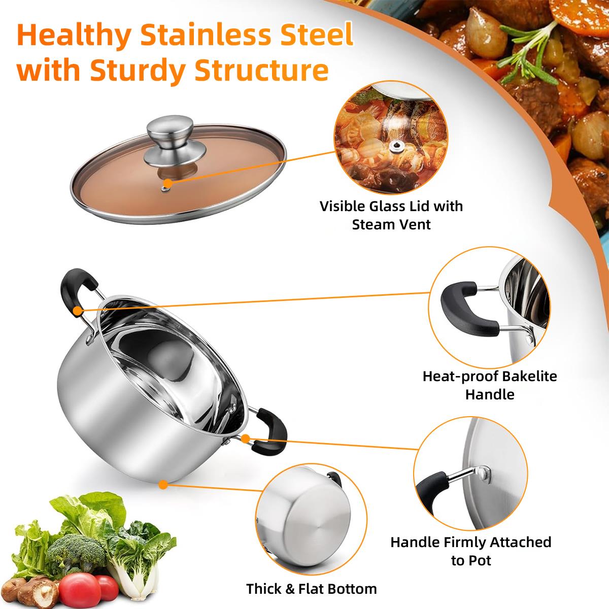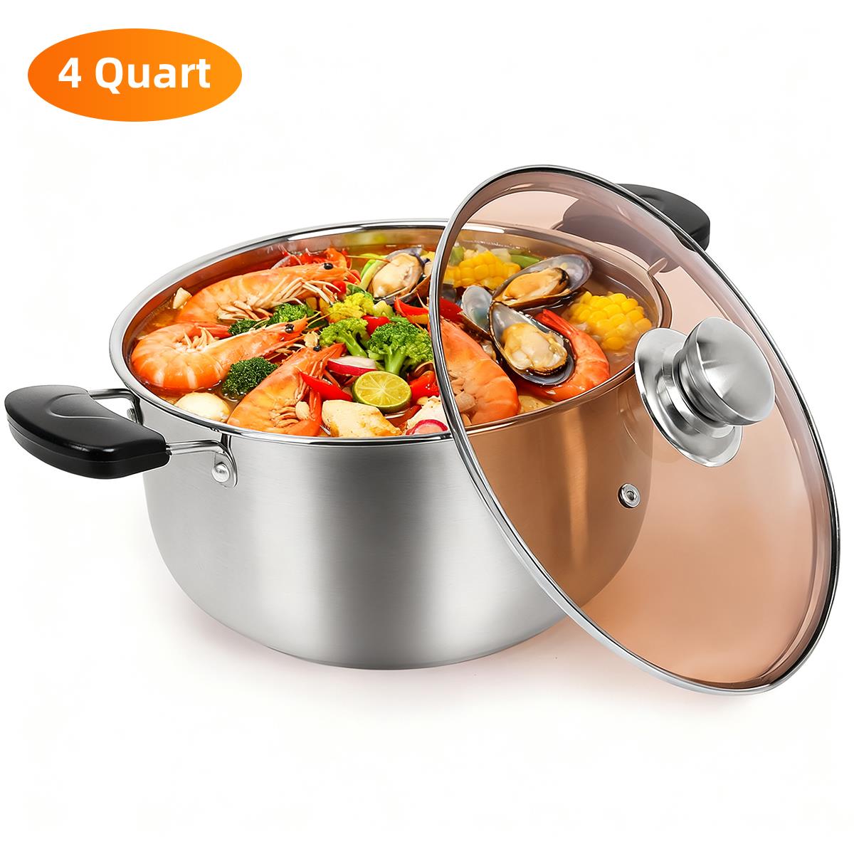 YourGo-To Kitchen Workhorse! Whip up delicious soups, hearty pastas, vibrant veggies, and more with GPED essential 4QT Stainless Steel Stock Pot. Built to last with premium stainless steel, it features a convenient see-through glass lid so you can monitor
