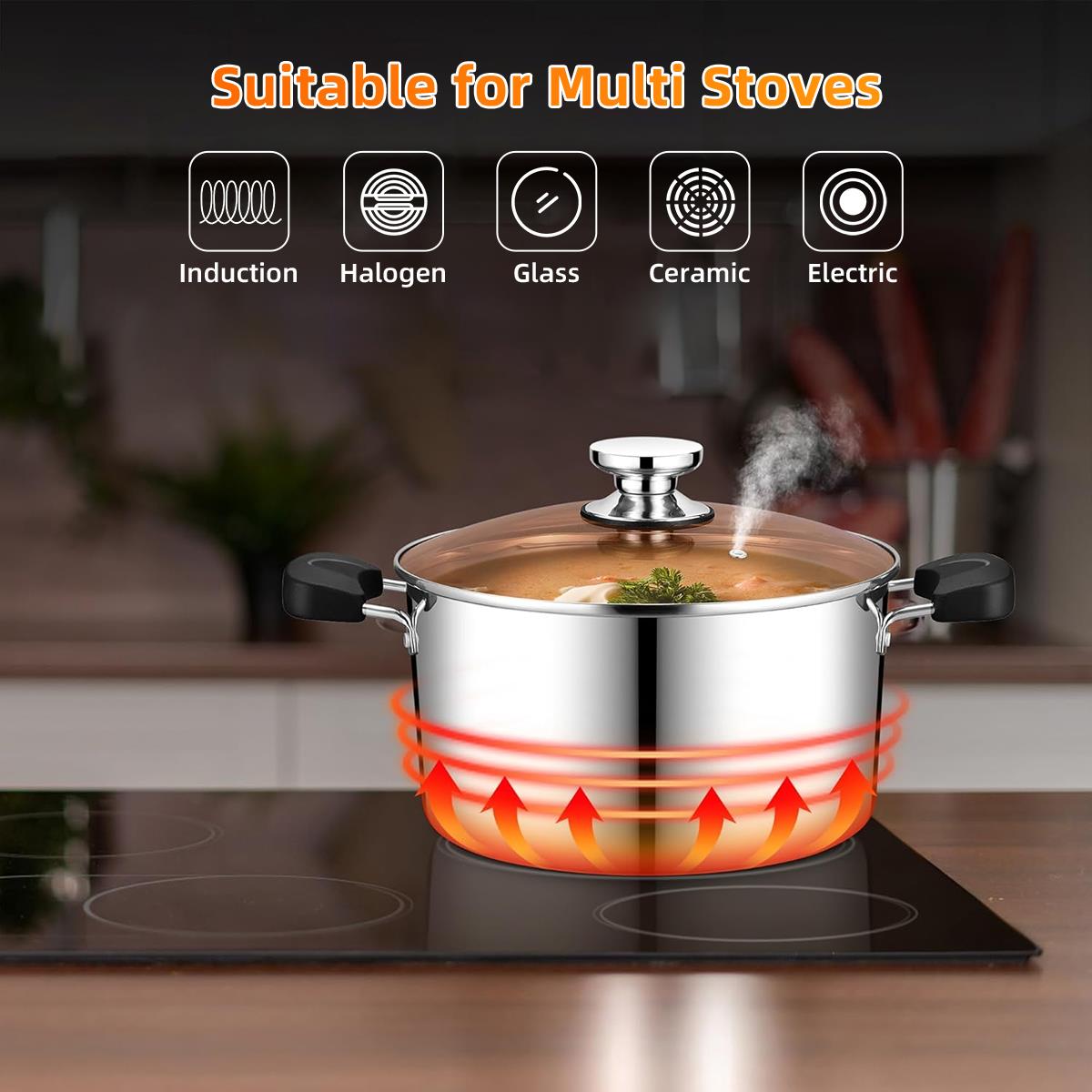 YourGo-To Kitchen Workhorse! Whip up delicious soups, hearty pastas, vibrant veggies, and more with GPED essential 6QT Stainless Steel Stock Pot. Built to last with premium stainless steel, it features a convenient see-through glass lid so you can monitor