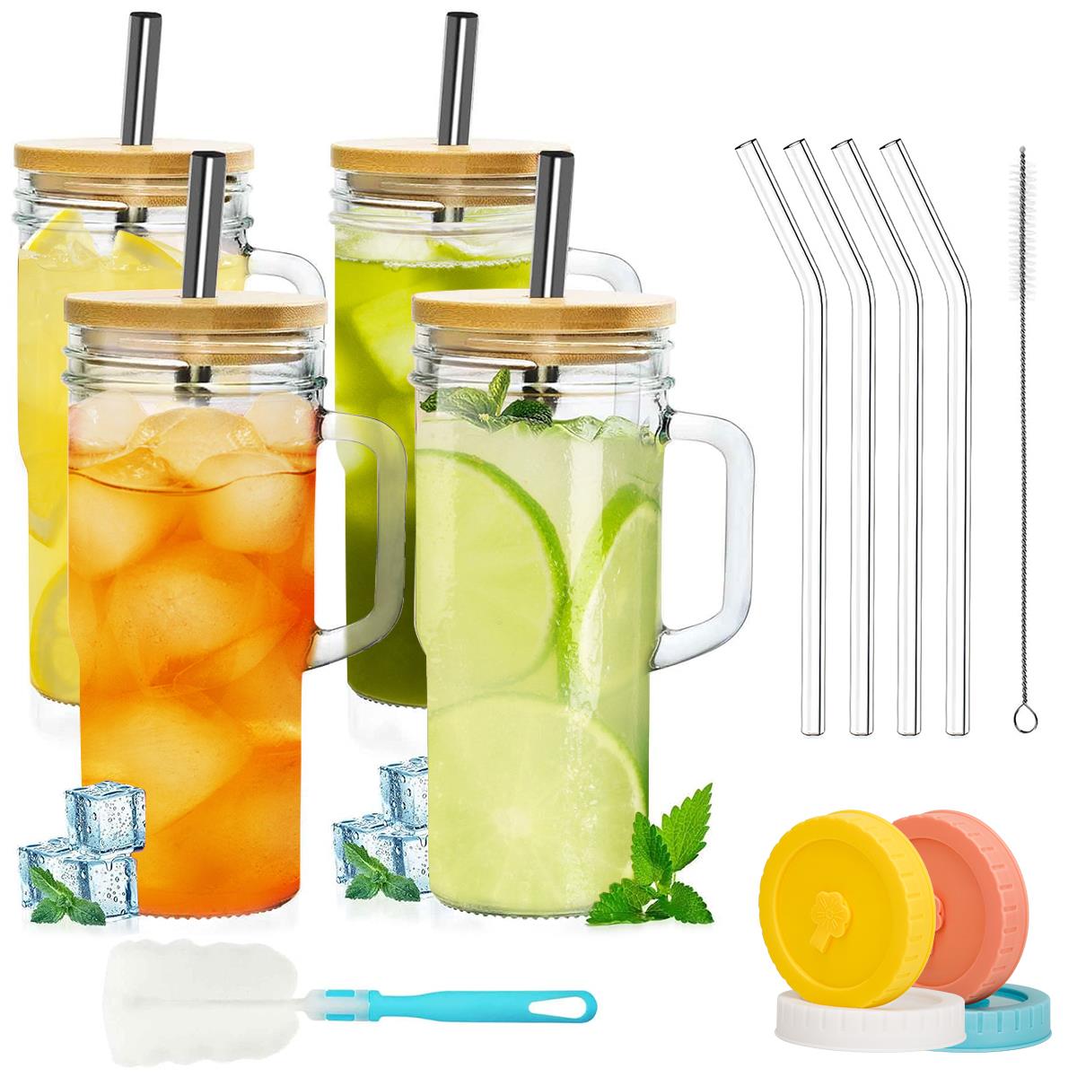 glass cups with lids and straws includes versatile bamboo & colorful