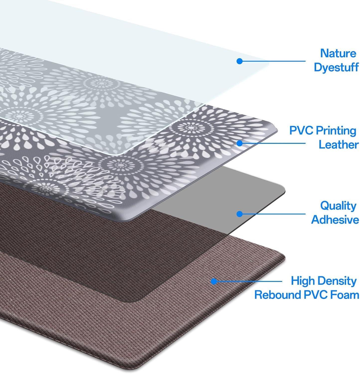 • 【Safe Kitchen Mat for Home】Our kitchen floor mats are manufactured from superior materials. The kitchen floor mats cushioned mat is made of 3/4" thick, high-density foam that reduces discomfort on feet, knees, legs, and back while standing for an extended period.