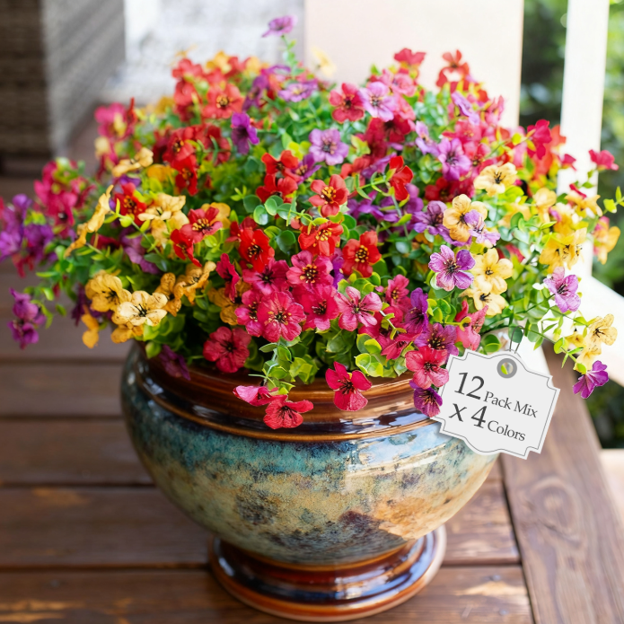 【12 Bundle Super Value Set】-This artificial flower set includes 12 bundles (3 red + 3 pink + 3 purple + 3 yellow). Each bundle consists of 7 flexible stems with 14 flower heads. These bendable artificial daisy flowers are perfect for versatile arrangemen…