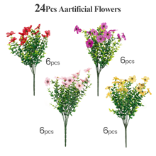 【24 Bundle Super Value Set】-This artificial flower set includes 24 bundles (6 red + 6 pink + 6 purple + 6 yellow). Each bundle consists of 7 flexible stems with 14 flower heads. These bendable artificial daisy flowers are perfect for versatile arrangemen…