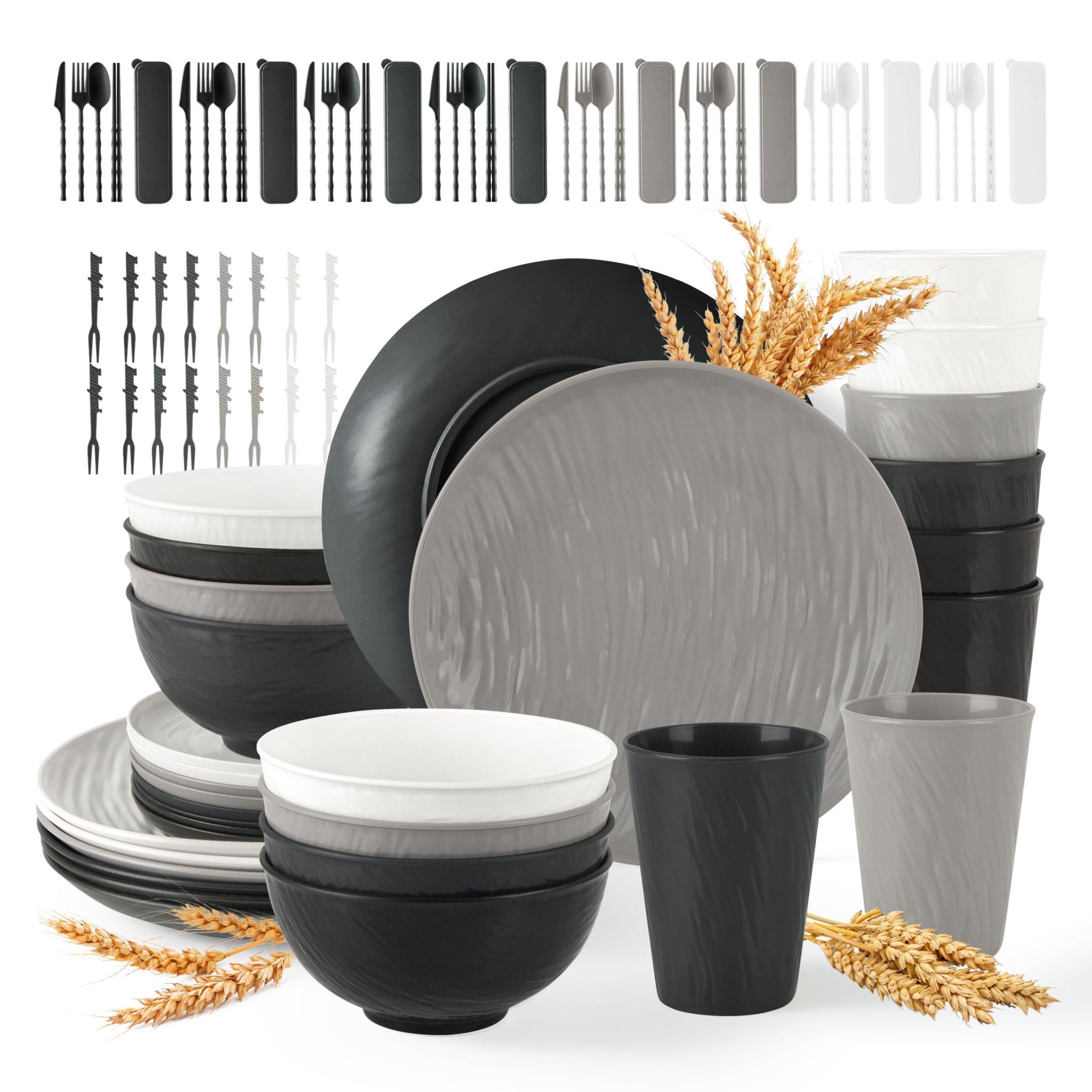 GPED 96 Pcs Imitation Rock Texture Wheat Straw Dinnerware Sets For 8, Nordic Minimal