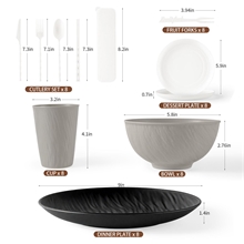 【96 Piece Imitation Rock Texture Wheat Straw Dinnerware Set】-Total 96 Pieces. The wheat straw dinnerware sets includes 8 x 8.9'' Dinner Plates, 8 x 5.9'' Dessert Plates, 8 x Bowls, 8 x Cups, 8 x Cutlery Set, 16 x Fruit Forks. Ensuring you have plenty for family meals or gatherings.