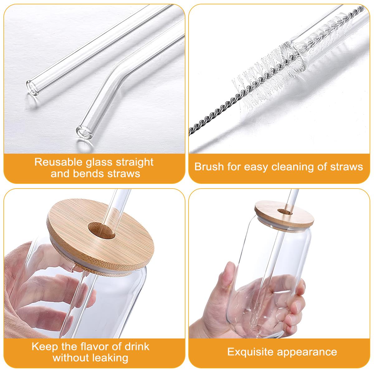 GPED glass cups with bamboo lids and glass straws set are made of thick borosilicate glass, free from lead and BPA, ensuring safe use for both hot and cold drinks. The 16oz can shaped glass cups feature a smooth rim for comfortable drinking and are designed for everyday durability and easy cleaning.