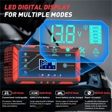 【Widely Compatible】 Perfect suitable for cars, golf cars, motorcycles, scooters, lawn mowers, ATVs, UTVs, tractors, trucks, SUVs, RVs, boats, PWCs, jet skis, snowmobiles, classic cars, children's toys and more. automatically switches to float, maintenance voltage after fully charging the battery.