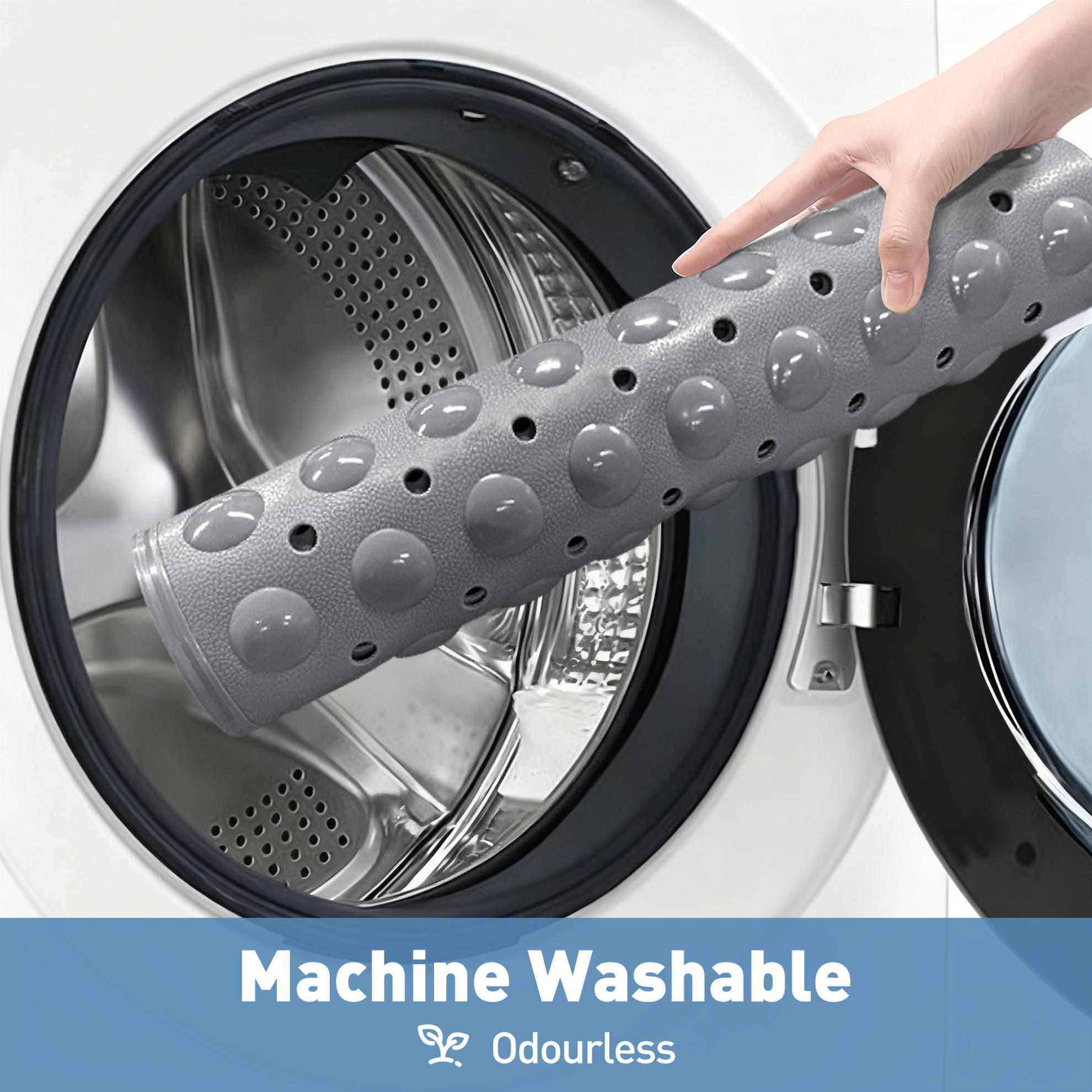 Bath tub mat is machine washable for deep cleaning convenience. Simply rinse it and hang it up after use - it dries naturally within minutes. It rolls up compactly for minimal storage space.Designed with easy care in mind, our bath mat features hundreds of drain holes that simplify upkeep.