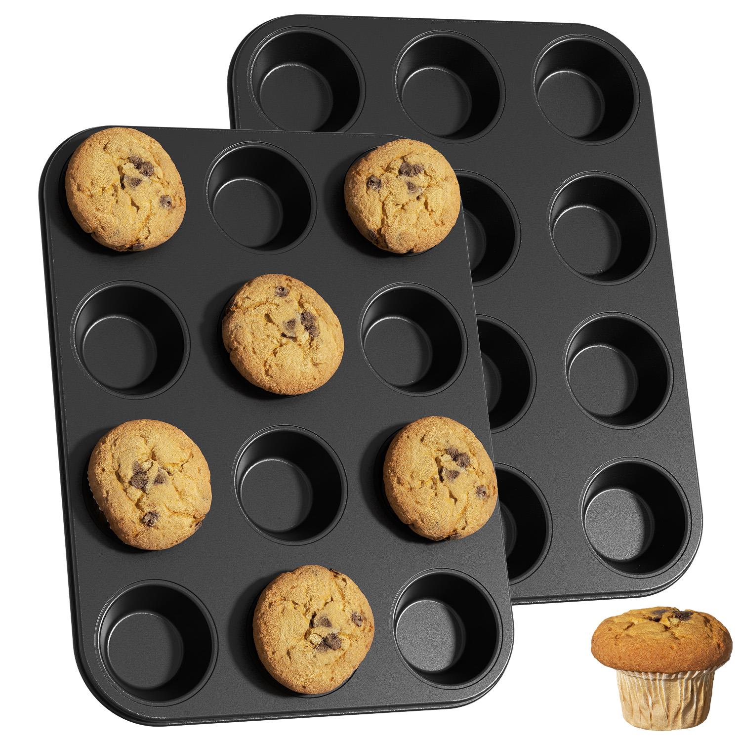 2 Pack Muffin Pan for Baking, 12-Cup Nonstick Cupcake Pan, 14.2" x 11" x 1.5" with 2.56" Cups