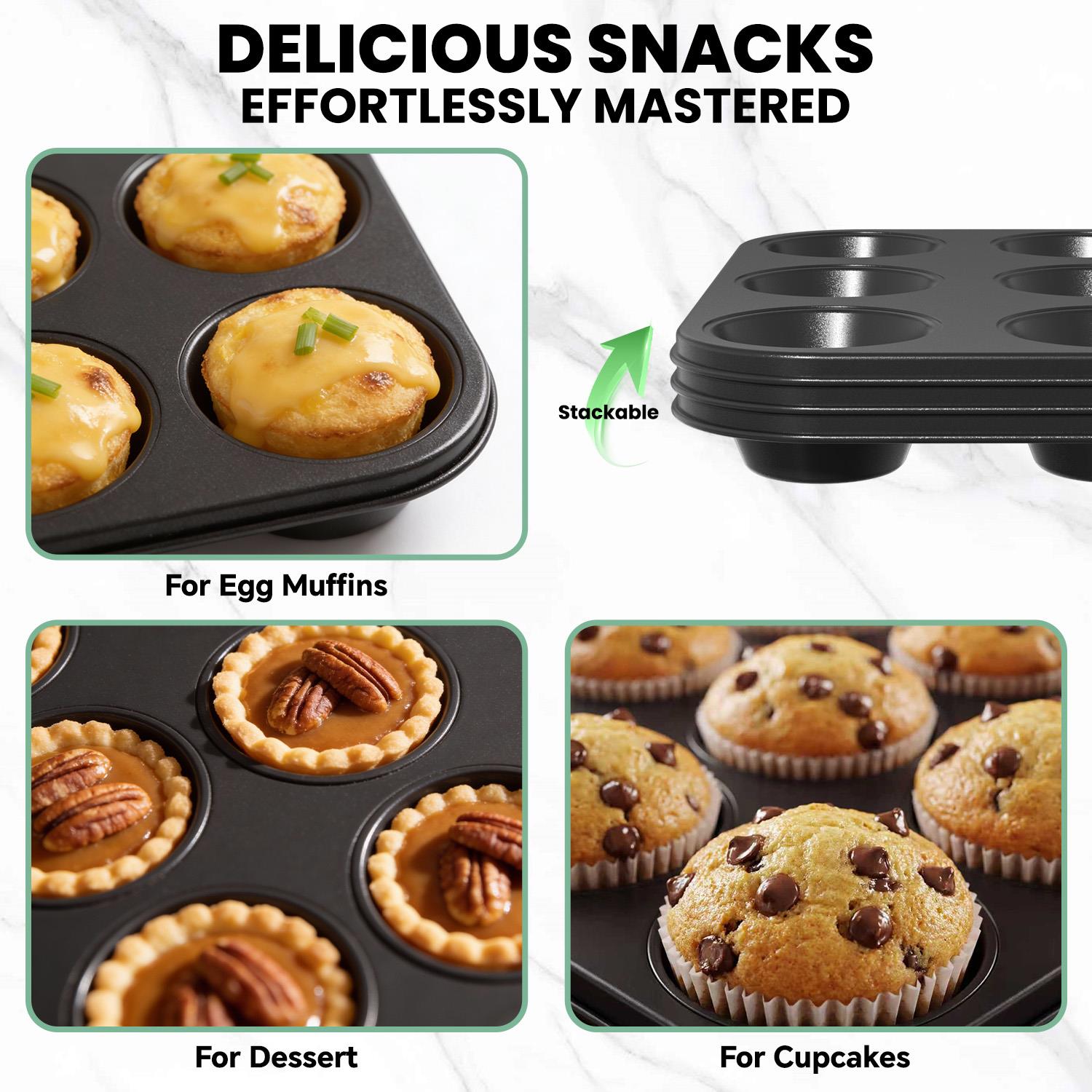 【Perfect 6-Cup Size】EachGPED muffin pan measures 10.43" L x 7.28" W x 1.1" H with 2.56-inch diameter cups, perfectly sized for standard baking liners. Ideal for everyday baking and special gatherings.【Professional-Grade Material】Craftedf…
