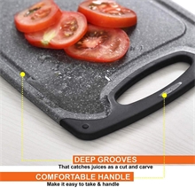 Upgrade your kitchen with this 3-piece plastic cutting board set. Designed for durability, each board resists knife scars and includes non-slip feet and juice grooves to contain messes. The different sizes help prevent cross-contamination. Dishwasher safe