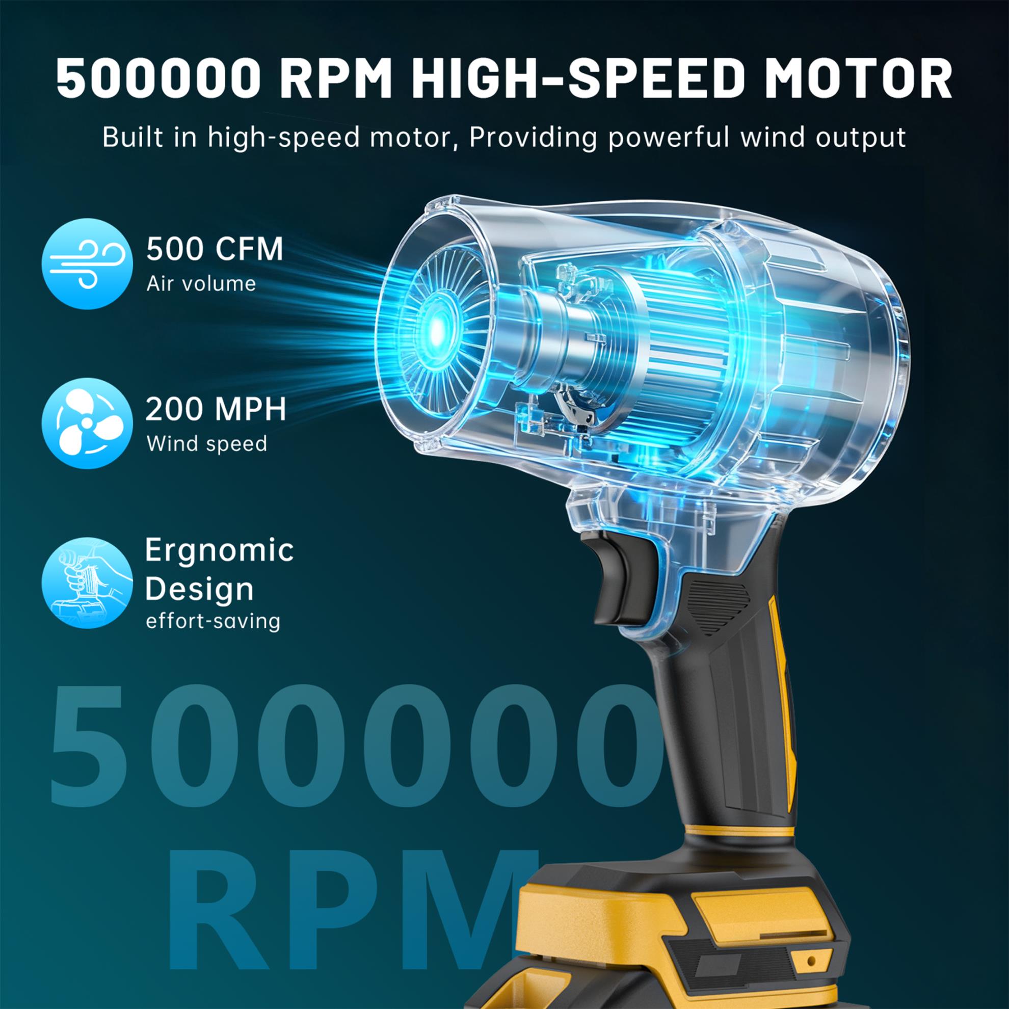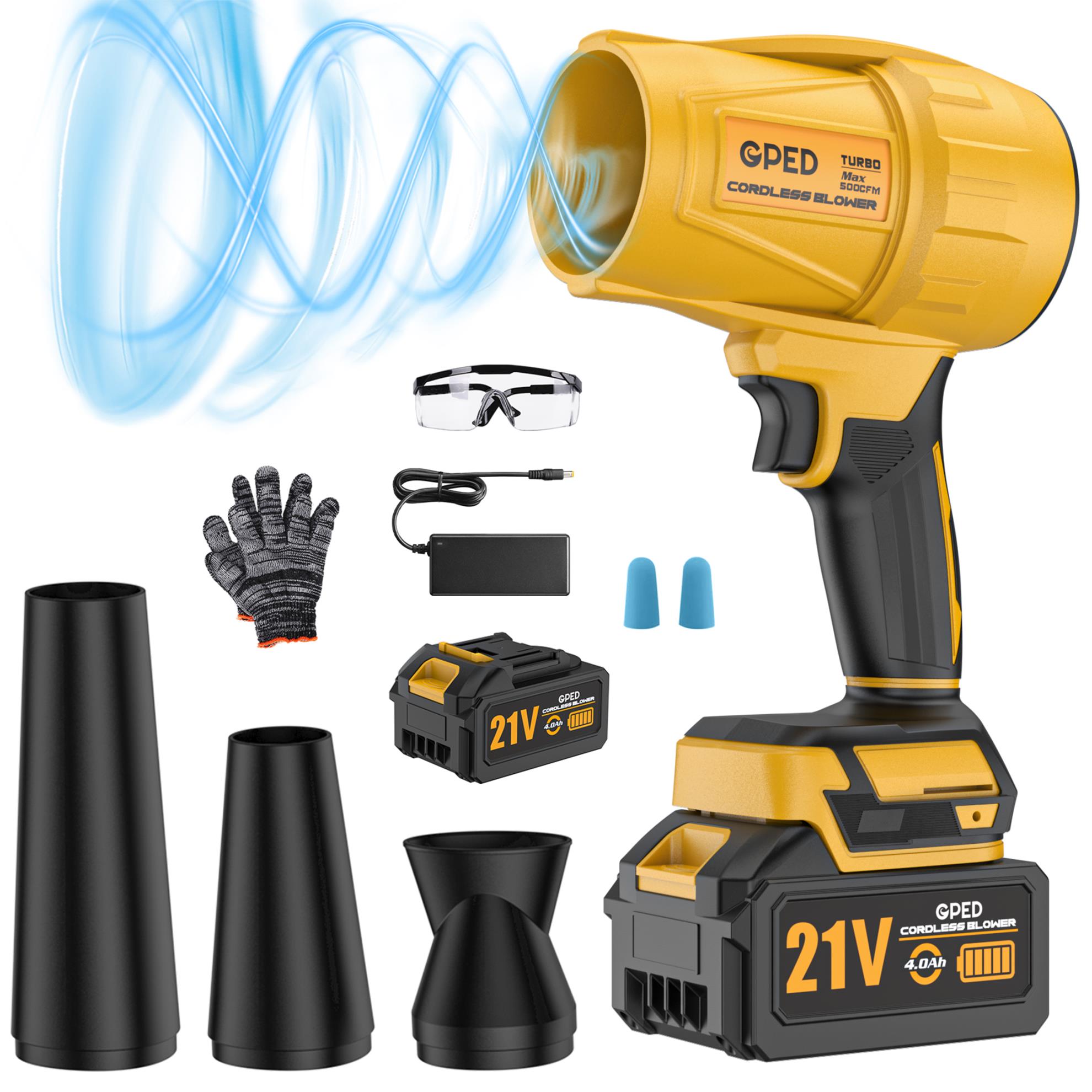 【Unstoppable Wind Power】- GPED cordless leaf blower features a 500,000 RPM high-speed motor delivering massive 500 CFM airflow. Its tremendous power effortlessly moves leaves, debris and dust, tackling everything from light particles to stubborn wet leav…