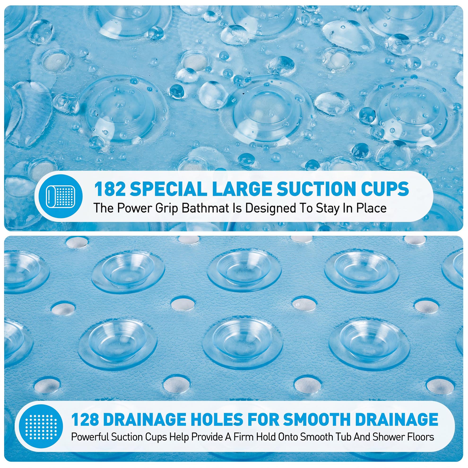 Hundreds of Suction Cups:Our high-quality bath and shower mats feature 200 large suction cups designed for optimal grip, outperforming mats with smaller cups. For optimal adhesion, we suggest firmly pressing the mat with your feet before use to ensure i