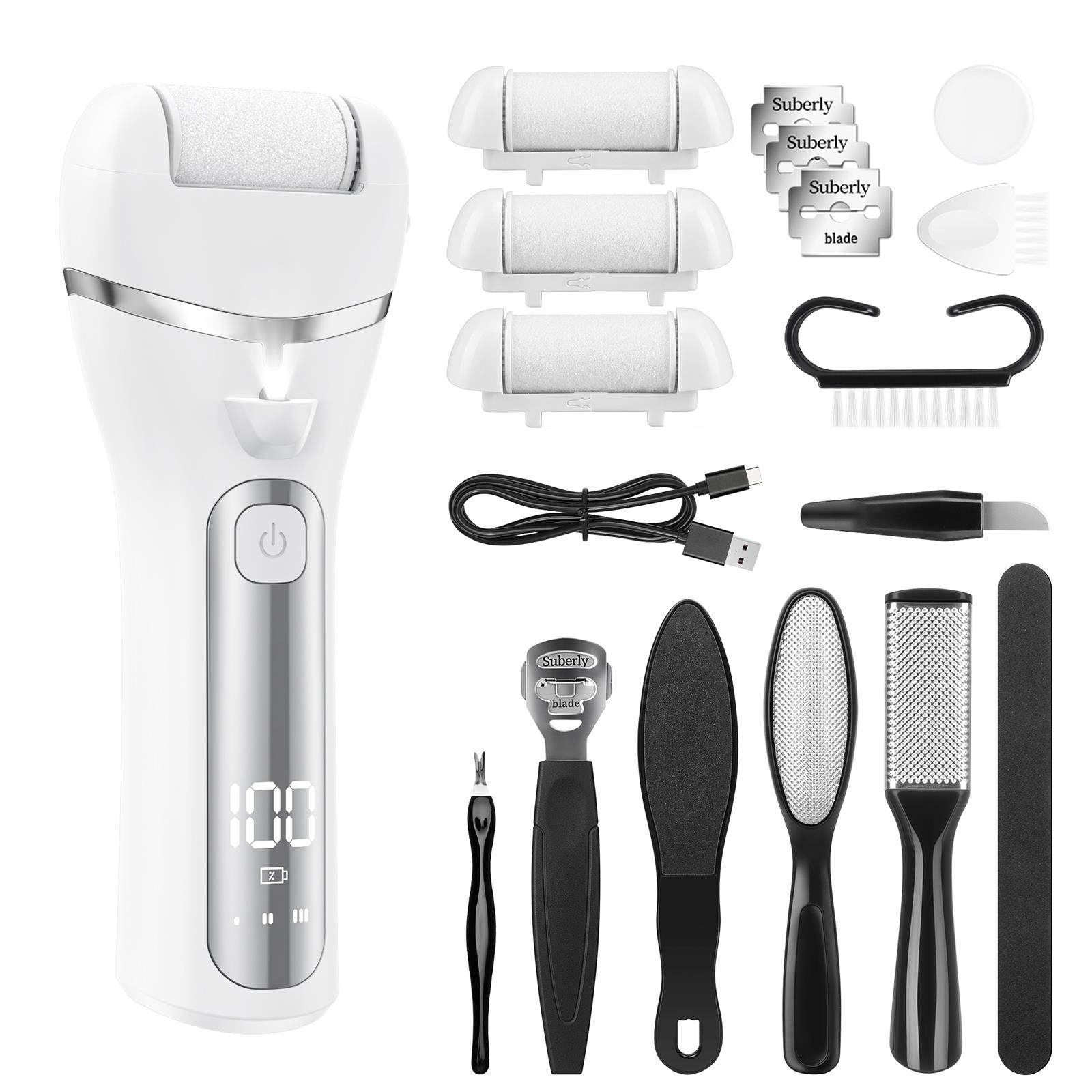 • 【All-in-1 Foot Care Kit with Callus Remover】Elevate your foot care routine with this all-in-one pedicure set, designed to deliver professional-grade results at home. The kit includes a powerful callus remover, three natural quartz grinding heads, and essential exfoliating tools—providing everything you need for smooth, well-groomed feet without additional purchases.