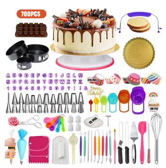 【700-Piece Complete Cake Decorating Kit with Pro-Grade Tools】This all-inclusive set provides every essential for professional cake decorating, featuring a smooth-spinning turntable, 3 cake trays, 470 cupcake stands, 9 fondant tools, 24 piping nozzles, 102 design cards, and multiple spatulas. With three sizes of non-stick cake molds and trays, easily prepare perfectly sized desserts for any gathering without additional purchases.