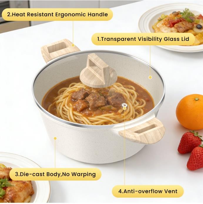 Durable Quality Our casserole features advanced die-cast technology and a 5mm thick nonstick coating, making it extremely durable and resistant to deformation. Whether making oatmeal, soups, sauces, or gravies, this pot has got you covered.