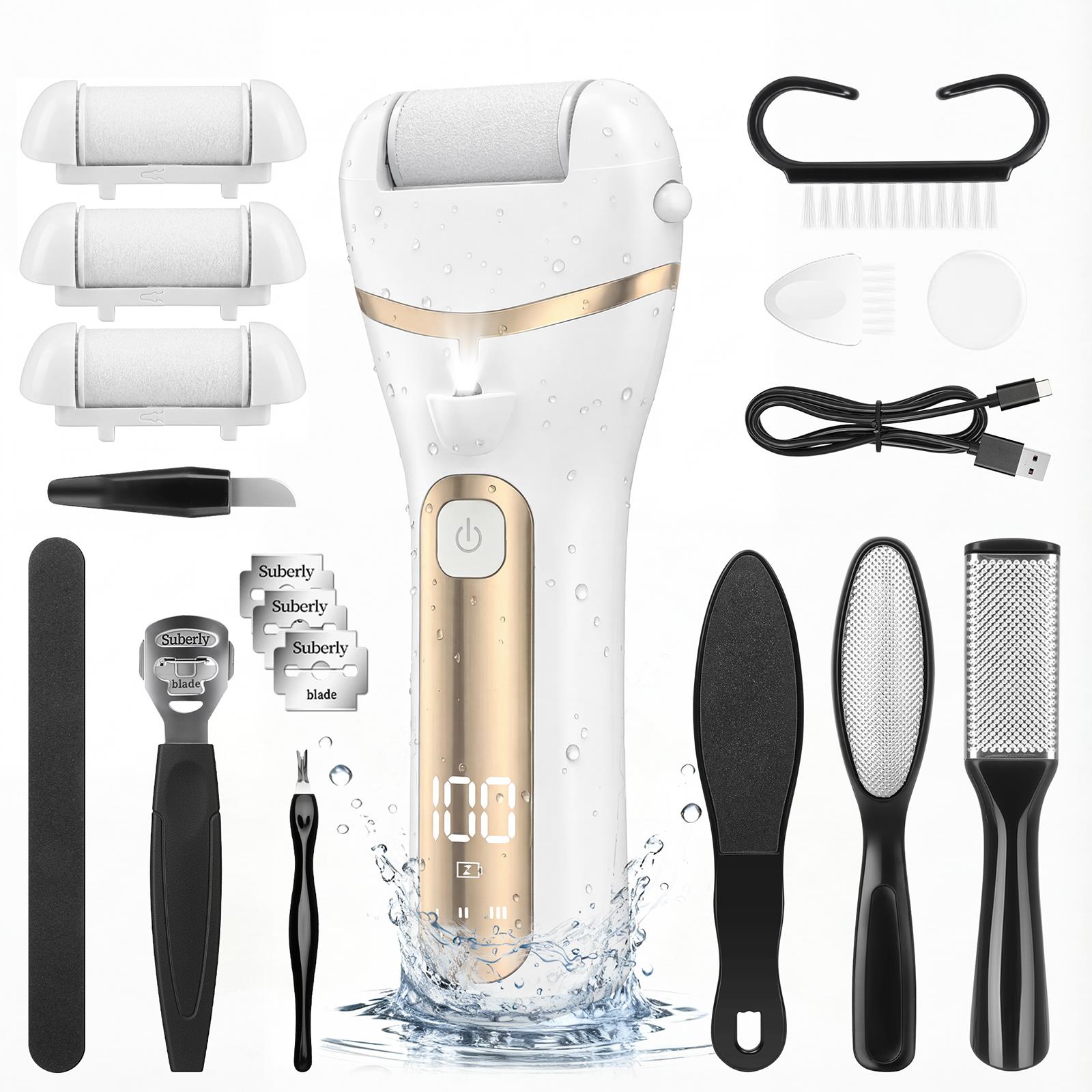 GPED 18 in 1 Electric Foot Callus Remover, Waterproof Callus Remover for Feet W/ 3 Speed, Rechargeable Foot Scrubber Kit W/ 3 Roller Heads,Professional Pedicure Tools & Foot File for Dry & Crack Skin